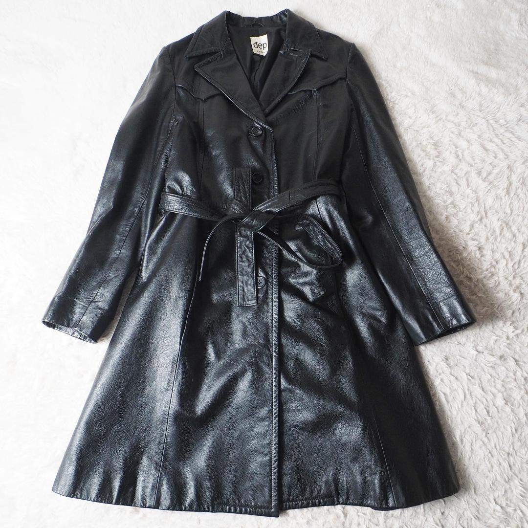 - レザーコート 牛革 チェスターコート ベルテッド 本革 ブラック 黒 ロングコート dep cocue レディースM相当