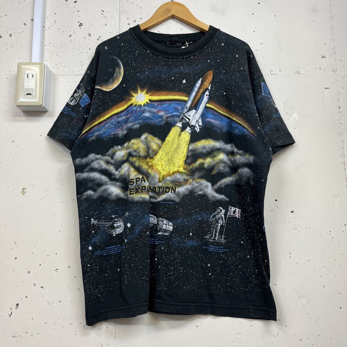 > 00s USA SPACE EXPLORATION 全面 プリント 宇宙 半袖 Tシャツ Tee 黒 ブラック系