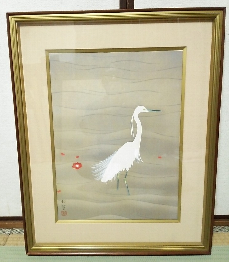 - ★【一美堂】★日本画☆複製画★上村松篁『花(鷺の図)』額60×74cm★【模写】☆保証書有☆