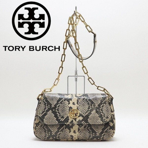 - 【HA806】◆TORY BURCH トリーバーチ パイソン型押しレザー ロゴ金具 チェーン 斜め掛け ショルダー バッグ