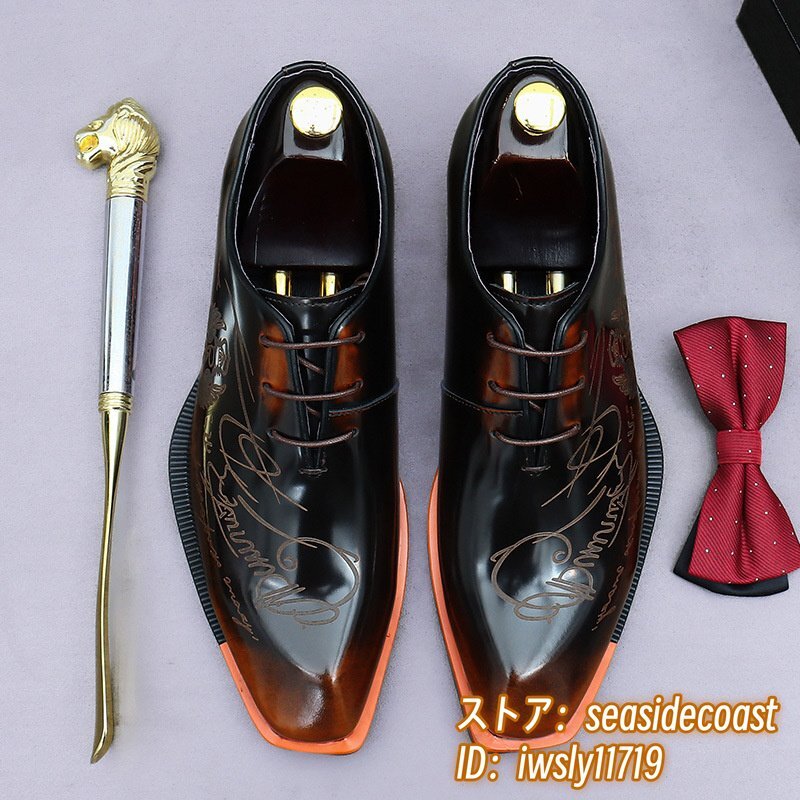 > 最高級◆定価11万 メンズ レザーシューズ 本革 ビジネスシューズ 革靴 フォーマル 職人手塗仕上げ 牛革 紳士靴 手作り新品 ブラウン 24.5cm
