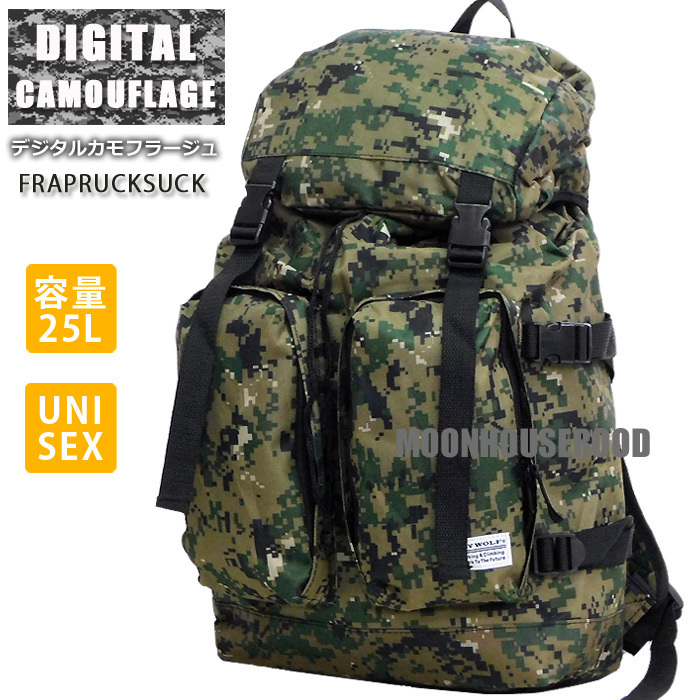 - 送料無料 ミリタリー柄 大容量 リュック メンズ レディース フラップ リュックサック デジタル カモフラージュ デジカモ 迷彩柄グリーン□