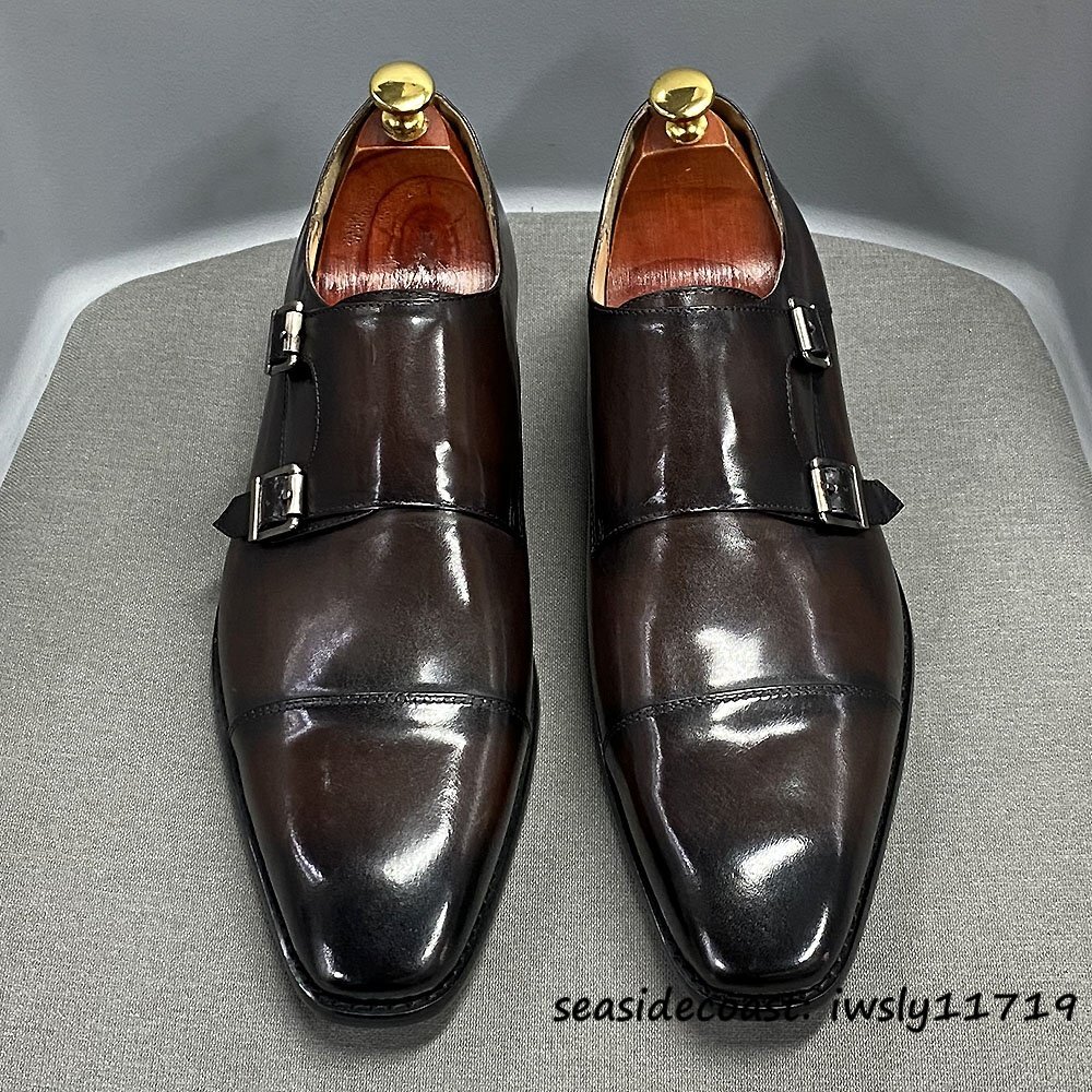 - 入手困難*ダブルモンクストラップ メンズ 本革 レザーシューズ 職人手作り ビジネスシューズ 最上級牛革 紳士靴 革靴 新品 珈琲色 28.0cm