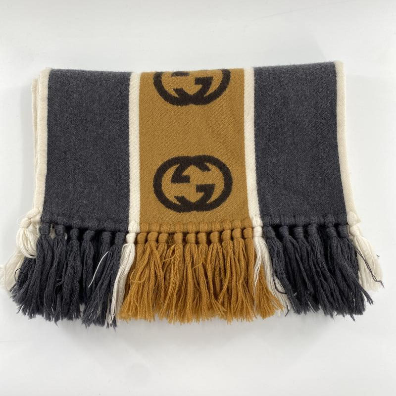> 【中古】GUCCI インターロッキングG マフラー グレー ブラウン ホワイト グッチ[240010486492]