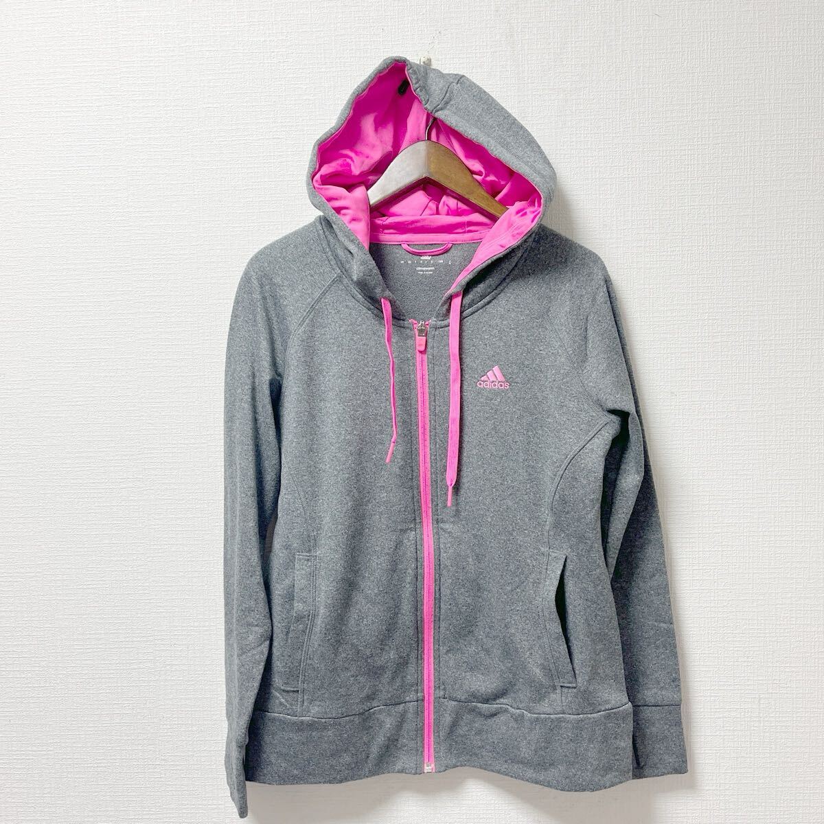 > adidas アディダス レディース ジップアップ パーカー Mサイズ グレー ポリエステル
