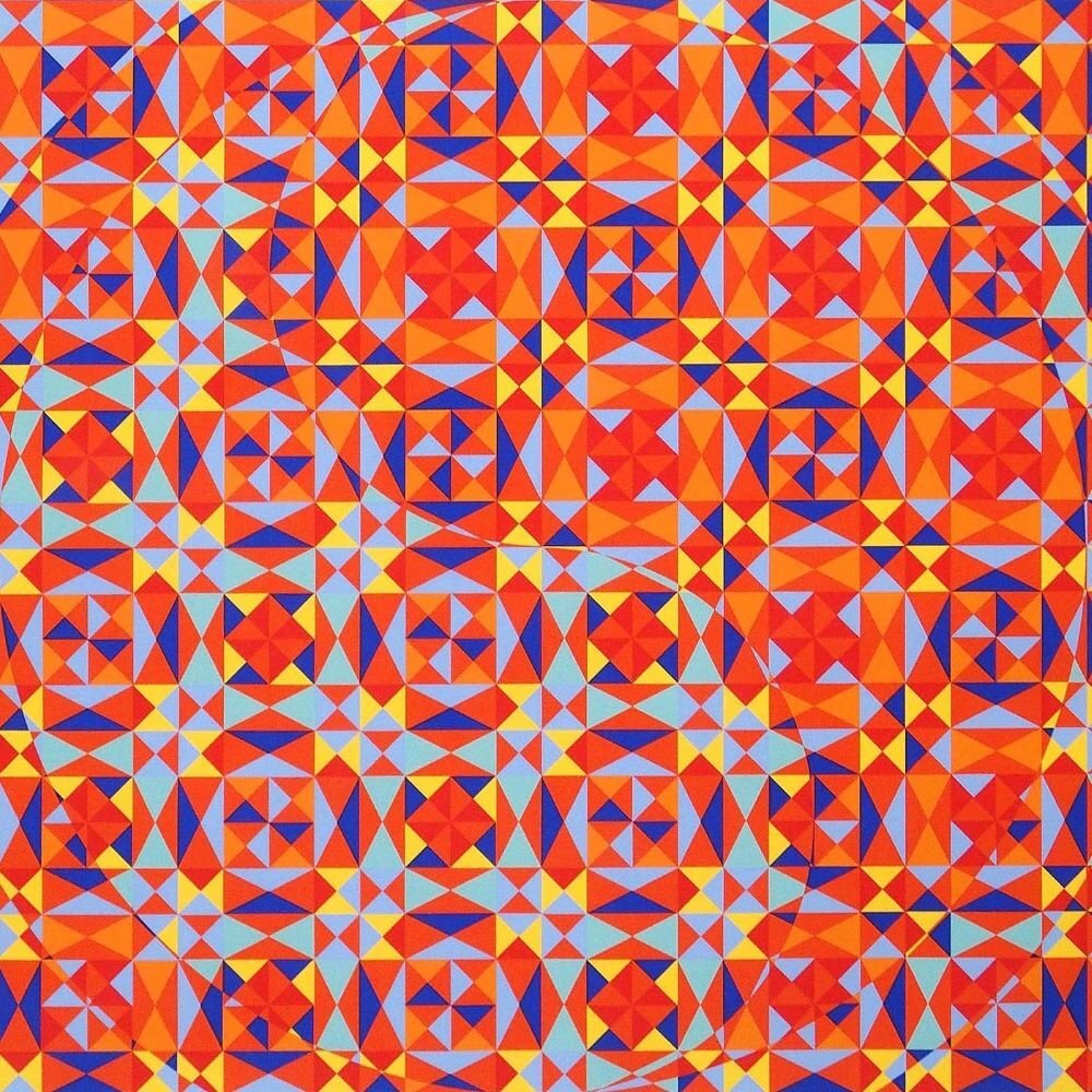 > オノサトトシノブ「Silk-75」 /シルクスクリーン/直筆サイン有/1975年制作/余白にシミ有/モザイク状の幾何学的抽象様式/真作保証/ENCHANTE