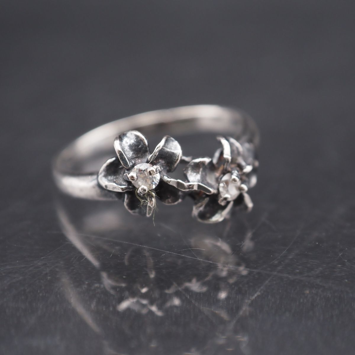 - G977 ハワイアンジュエリー PCU 925刻印 リング プルメリア ダイヤモンド風 デザイン シルバー 指輪 12号
