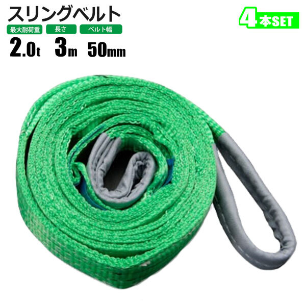 - スリングベルト 2t 3M 4本セット ベルトスリング 玉掛