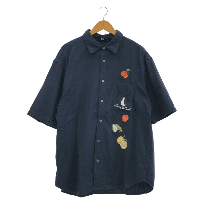 - 【中古】LIN ラミとアール 美味しいジャムを作ろう 半袖 ボタンダウンシャツ XL ネイビー りん[240010488949]