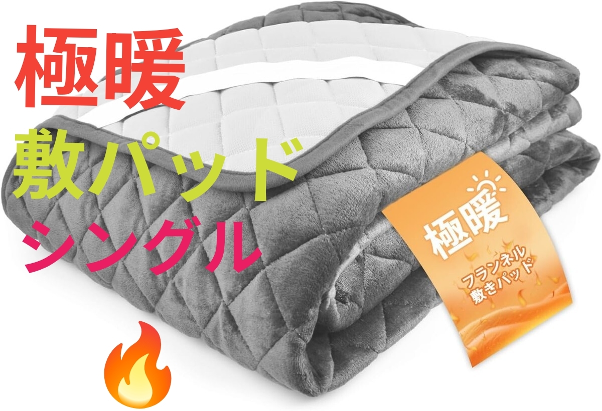 - 《敷きパッド シングル 冬用 あったか ベッドパッド 極暖》フランネル ふわふわ 吸湿発熱 四隅ゴム付き 暖かい 100×200 cm グレー