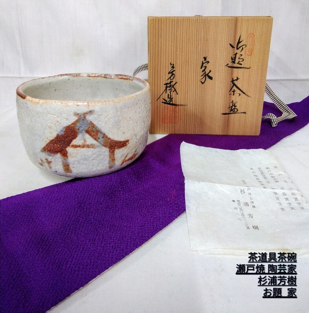 > g_t M093 【骨董】 茶道具茶碗 兎月窯 杉浦芳樹造 /お題 [家] 志野焼茶碗(1915~1982年)北大路魯山人を師とする瀬戸陶芸家 中古品長期保管品