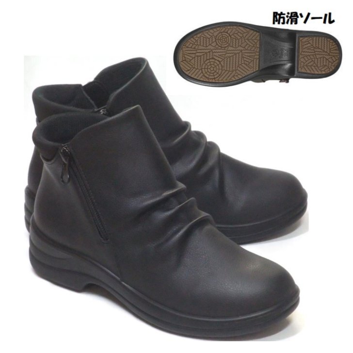 - 痛くない 幅広 4E 防水 防滑 防寒 ブーツ 24.5 Pansy パンジー 4691 黒 Wファスナー 婦人 レディース 学生 ショートブーツ 通勤 通学
