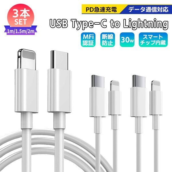 > [2]USB Type-C to Lightning ケーブル 1m 1.5m 2m 各1本 計3本セット / PD 急速充電 データ通信 データ転送 スマホ iPhone 充電コード iPad