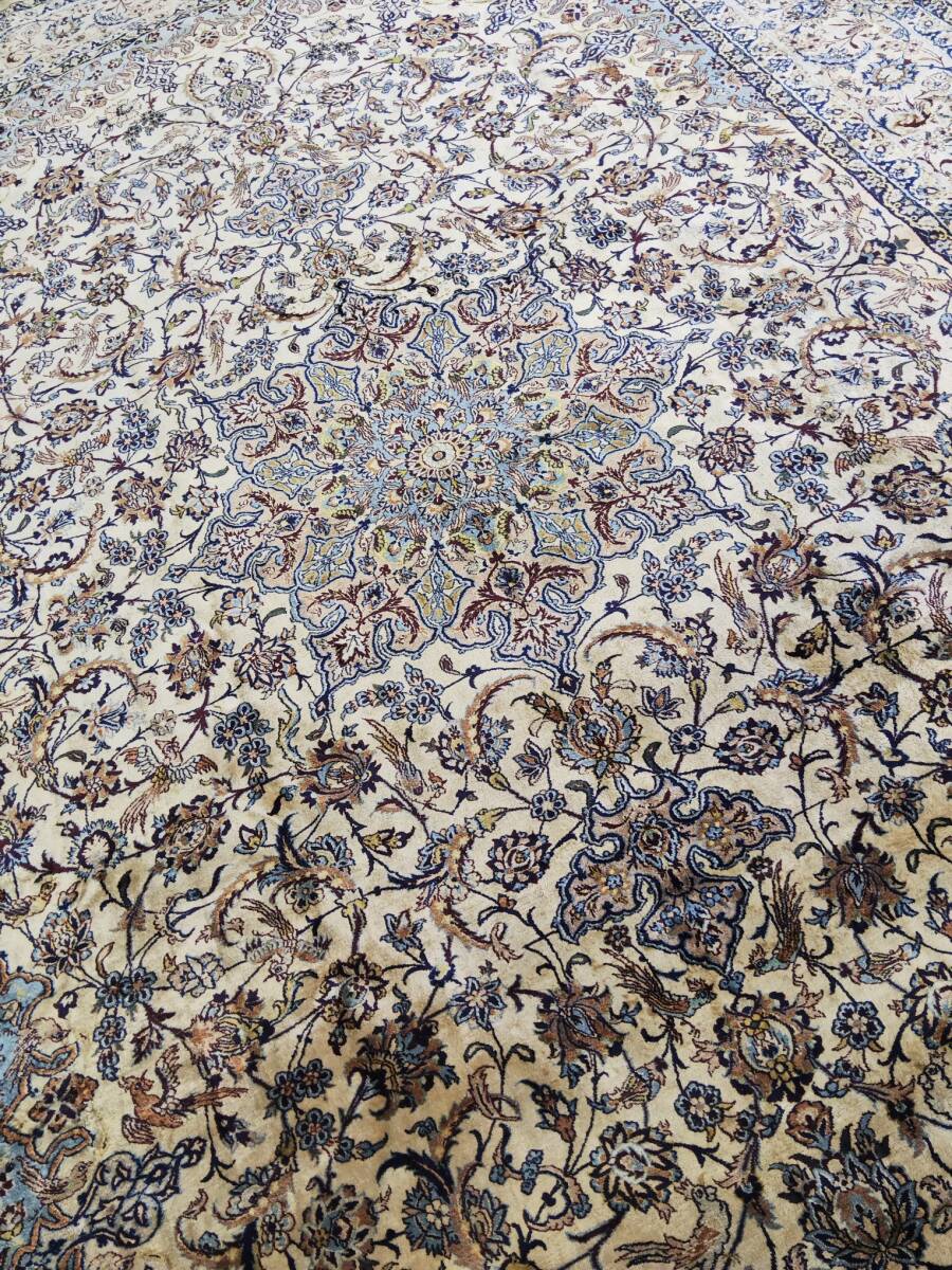- 【希少】J304 ペルシャ絨毯 ナイン フルシルク 214−327cm 手織 100万ノット トルコ絨毯、ヘレケ好きな方へ