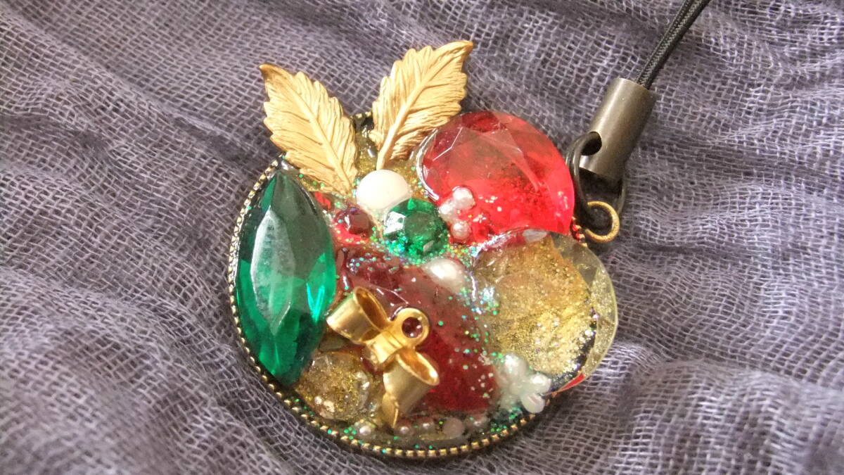 - ハンドメイド:レジン: クリスマスカラーのストラップ 1-15