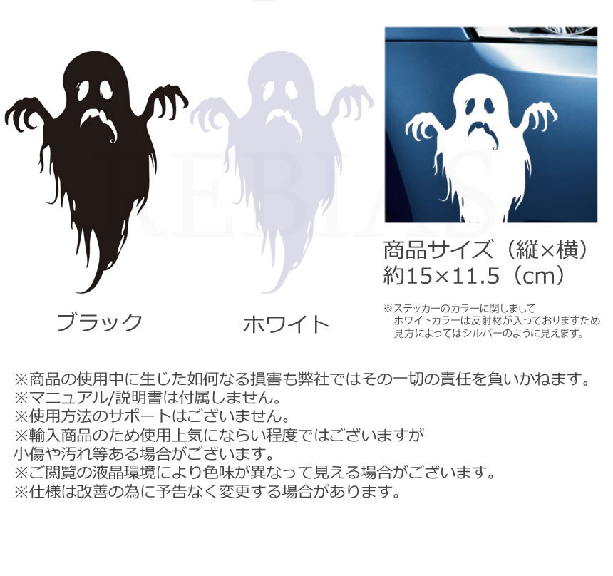- 送料無料 ゴーストA おばけ 【ブラック】 幽霊 可愛い ボンネット ウォールステッカー エンブレム カスタム 外装