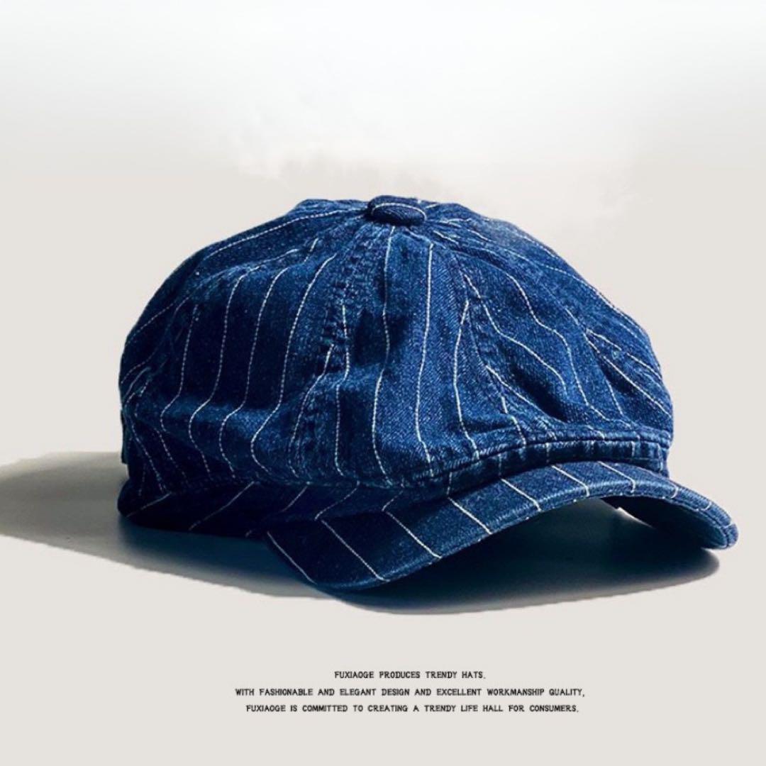 - ウォバッシュ ストライプ キャスケット デニム 帽子 アメカジ 古着 韓国