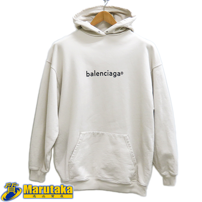 > 【バレンシアガ】パーカー XS コピーライトロゴ 578135 スウェット プルオーバー フーディ ベージュ クリーニング済み 綿 Balenciaga 中古