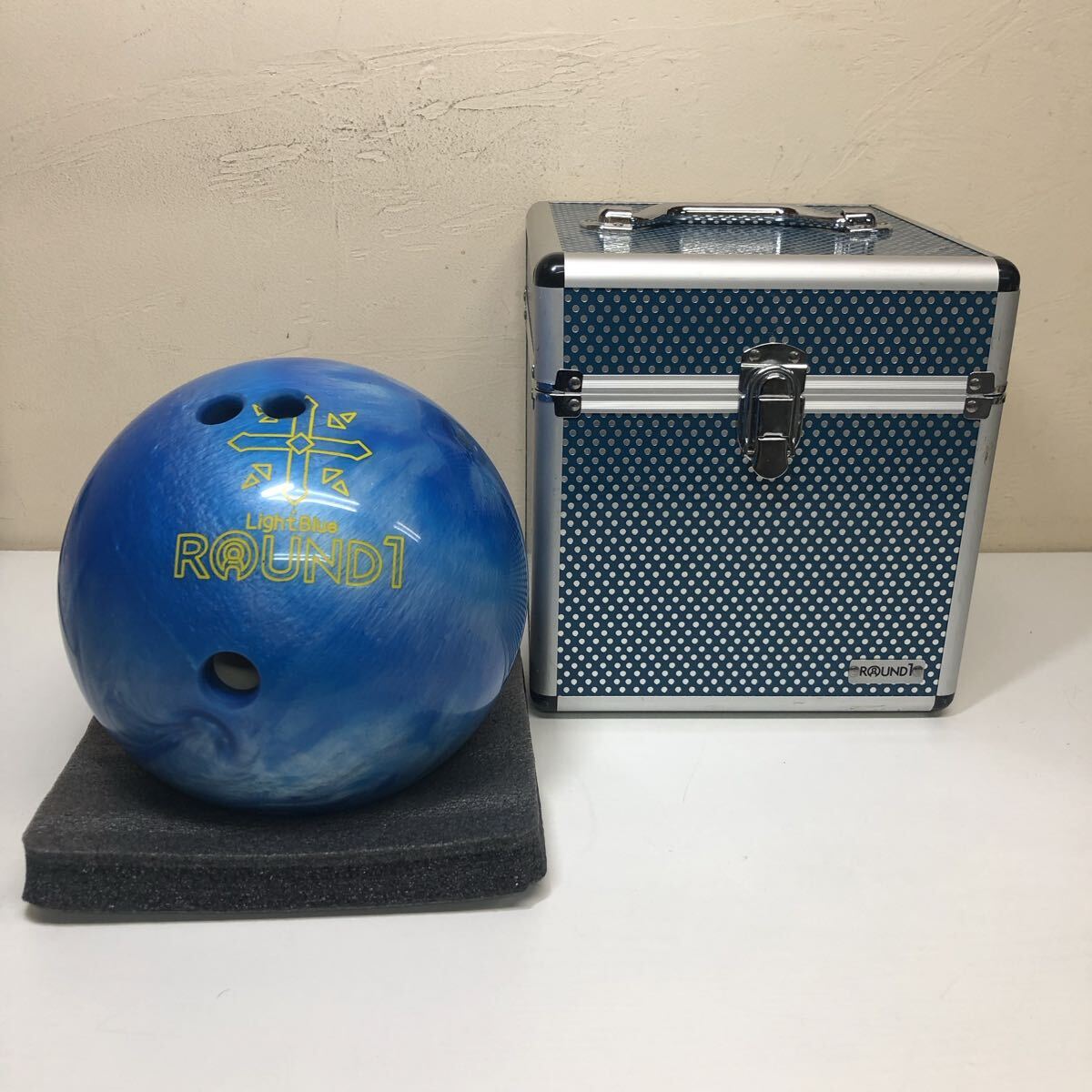> ※ ROUND1 ラウンドワン ボウリングボール ボウリング玉 ブルー ライトブルー 約4kg ハードケース付き 使用感有り 中古品