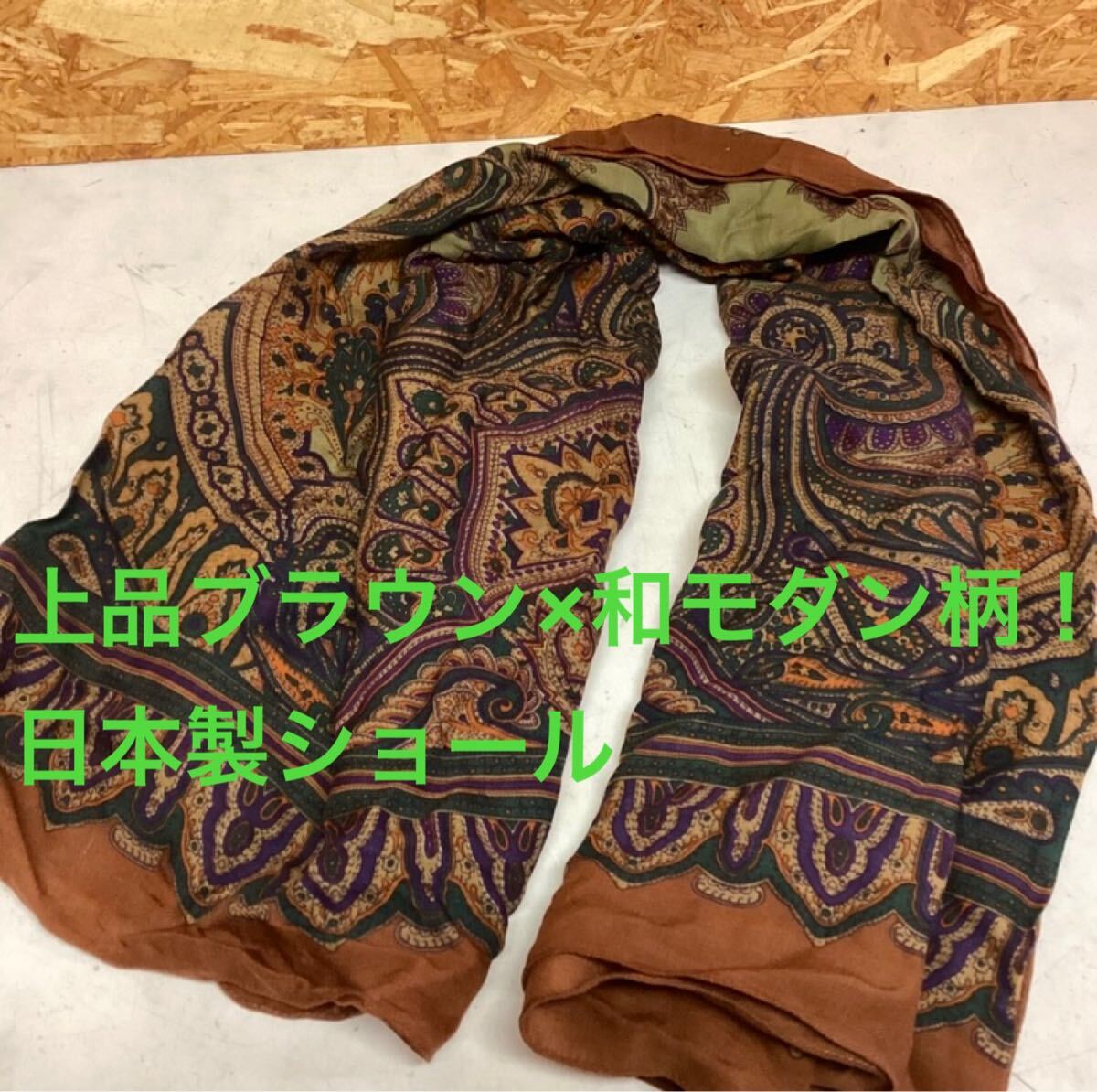 - 日本製エスニック柄ショール ストール ブラウン系(ふ77)