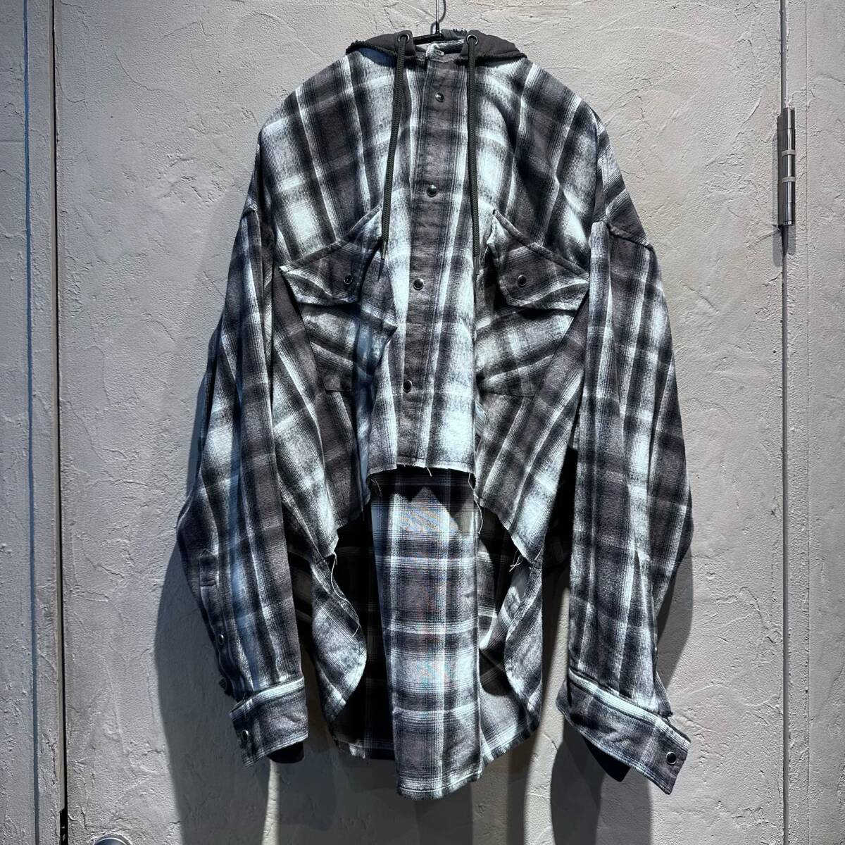 > Maison MIHARA YASUHIRO メゾンミハラヤスヒロ Hooded Check Shirt シャツパーカー K15SH421 グレー系 size:36【代官山A10】