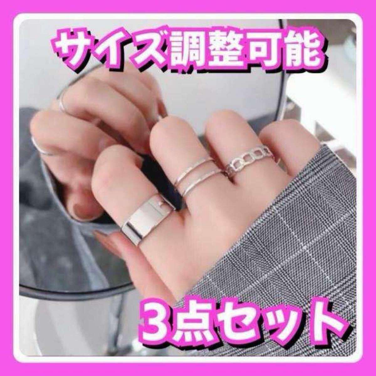 - シルバー リング 3点 セット メンズ レディース フリーサイズ 指輪 韓国 式