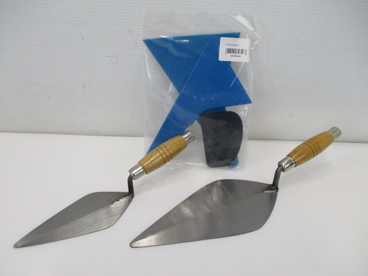 - L6左官道具★本職 レンガ鏝 こて (全長約29㎝、37㎝) 2丁、パテヘラセット(3PCS)
