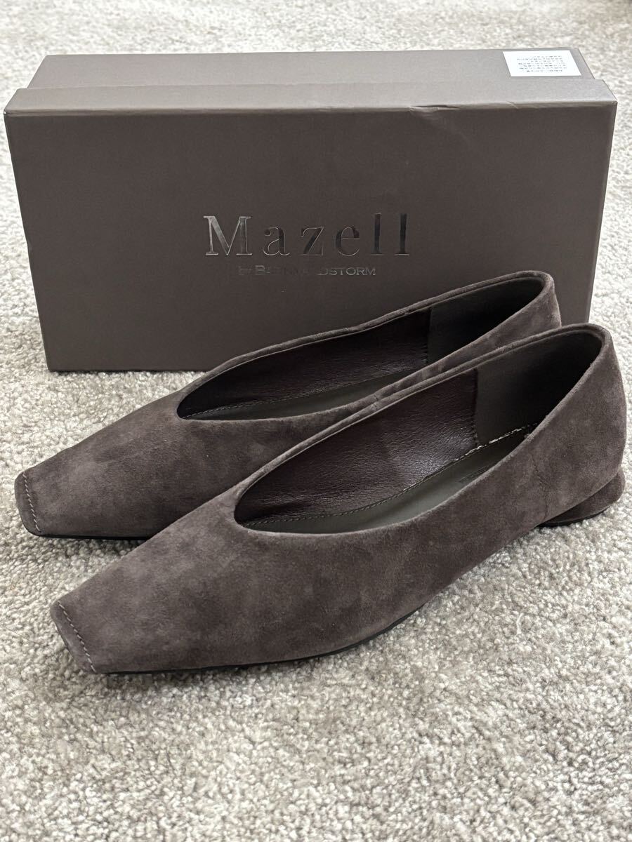 > ■激安■Mazell/マゼル■トウステッチスクエアフラット/パンプス■チャコールスエード■39/24.5cm前後◎