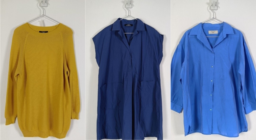 > MaxMaraWeekendの3点まとめ売り【①黄色のニット】【②紺のシャツワンピース】【③水色のシャツ】【全部大きいサイズ】1000円スタート