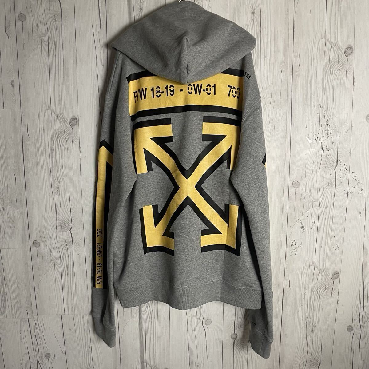 > Off-White FW18-19 Arrows Hoodie Gray Yellow Logo Streetwear Y2K Archive Virgil Abloh オフホワイト ヴァージル・アブロー期 短丈