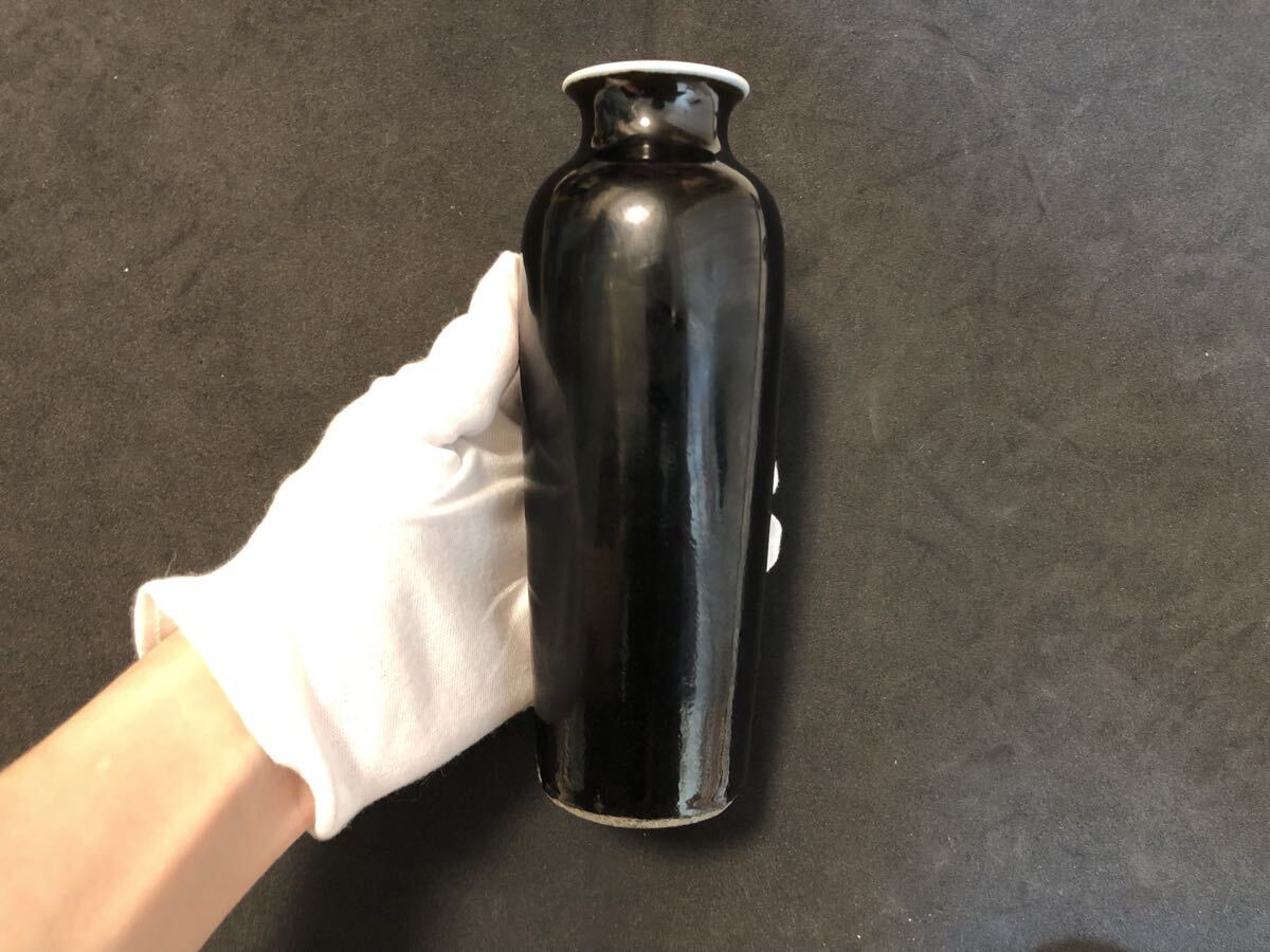 - 古美術 清 呉須 烏金釉 黒釉 花瓶 一輪挿し 花入り 瓶 時代物 骨董品 唐物 花文 青花 中国美術 染付
