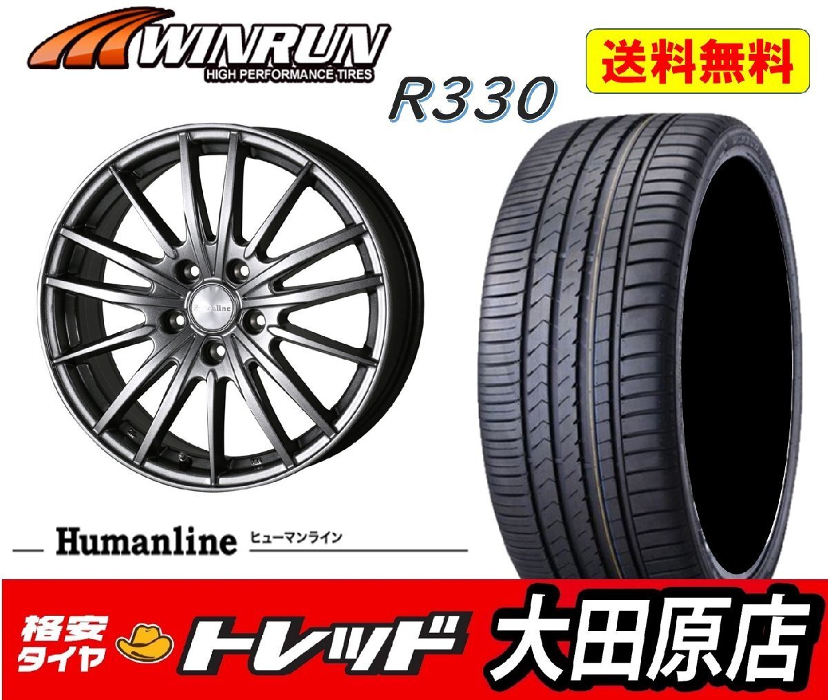 > 大田原店★送料無料★ラスト1台★新品タイヤ&ホイールセット★ヒューマンラインHS06 18インチ7.0J +53 5H114.3★ウィンラン R330 215/45R1