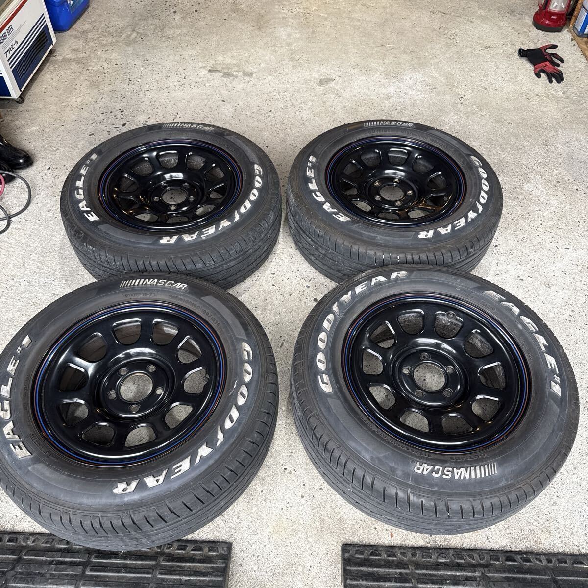 - デイトナ MLJ 16インチ 114.3 5穴 ナスカー 215/65 グッドイヤー ナスカー ステップワゴン セレナ ヴォクシー ノア 4本セット 美品