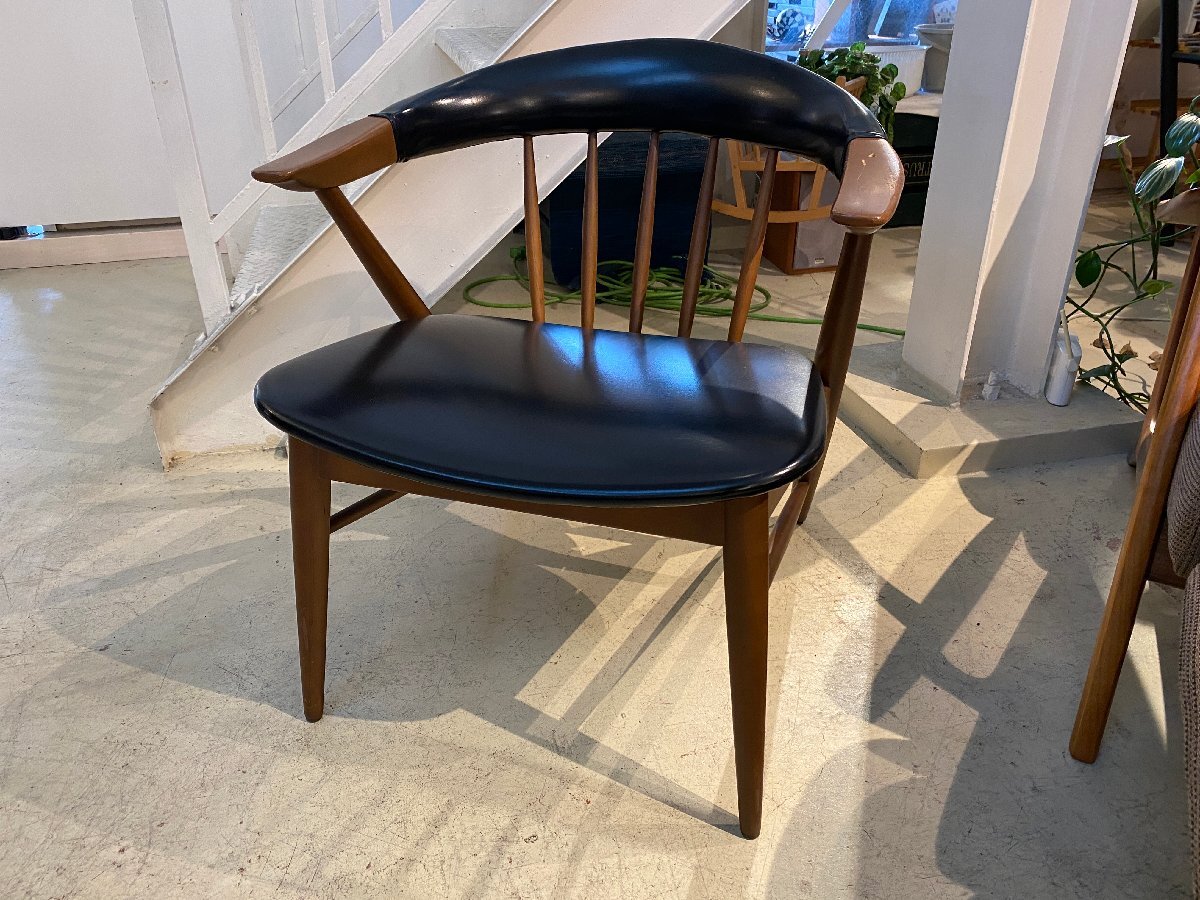 > 希少 asahi アサヒ アームチェア ヴィンテージ ミッドセンチュリー ダイニングチェア 椅子 ブラック 中古品②