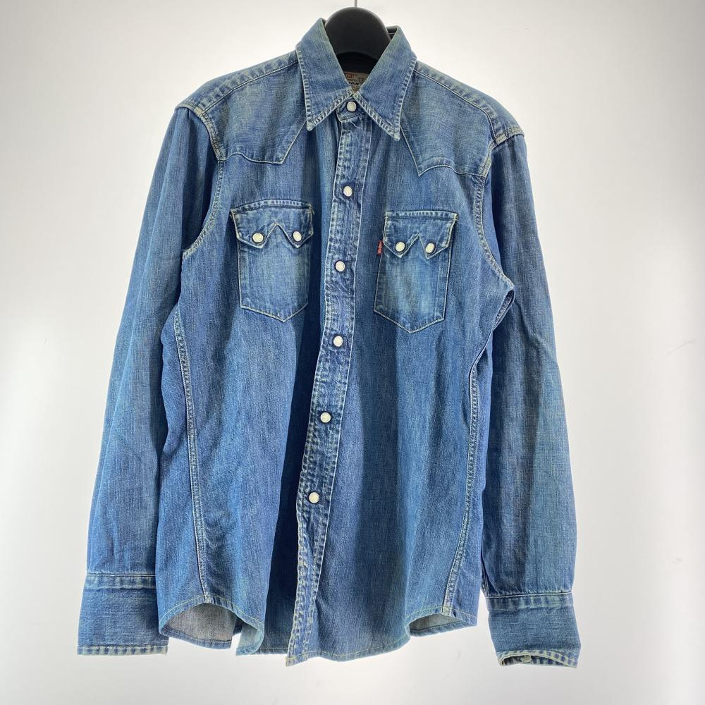 - 【中古】98s LEVI'S デニムウエスタンシャツ ショートホーン復刻 USA製 555 バレンシア製 サイズM 7205-1018 インディゴ[240017720729]