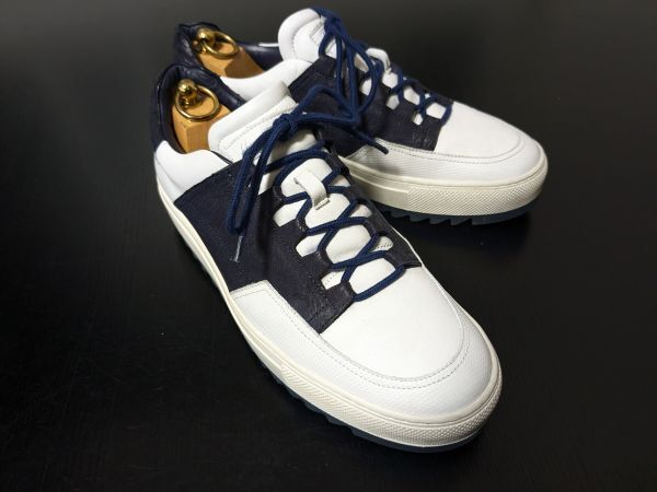 - 使用少 フェラガモ 10 Ferragamo サドルデザイン 濃紺×白 オーストリッチレザーコンビスニーカー 873