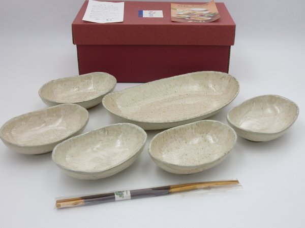 > ◆◇食彩遊器 取り分け揃(楕円パスタ皿×1 楕円小鉢×5 菜箸×1) / 煮物鉢 粉引 日本製 美濃焼 和食器 陶器 織部 セット / 未使用◇◆