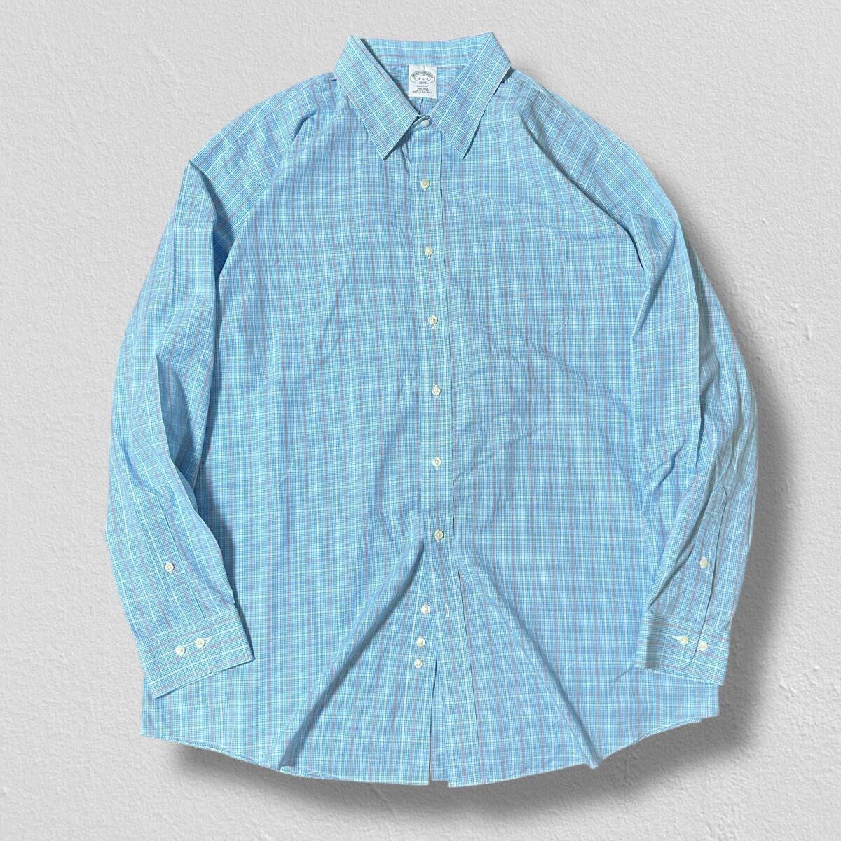 - Brooks Brothers 1818 長袖シャツ ライトブルー系×ホワイトチェック柄 18-6/7 ●洗濯プレス済●ネコポス可● ブルックス 水色 古着/781