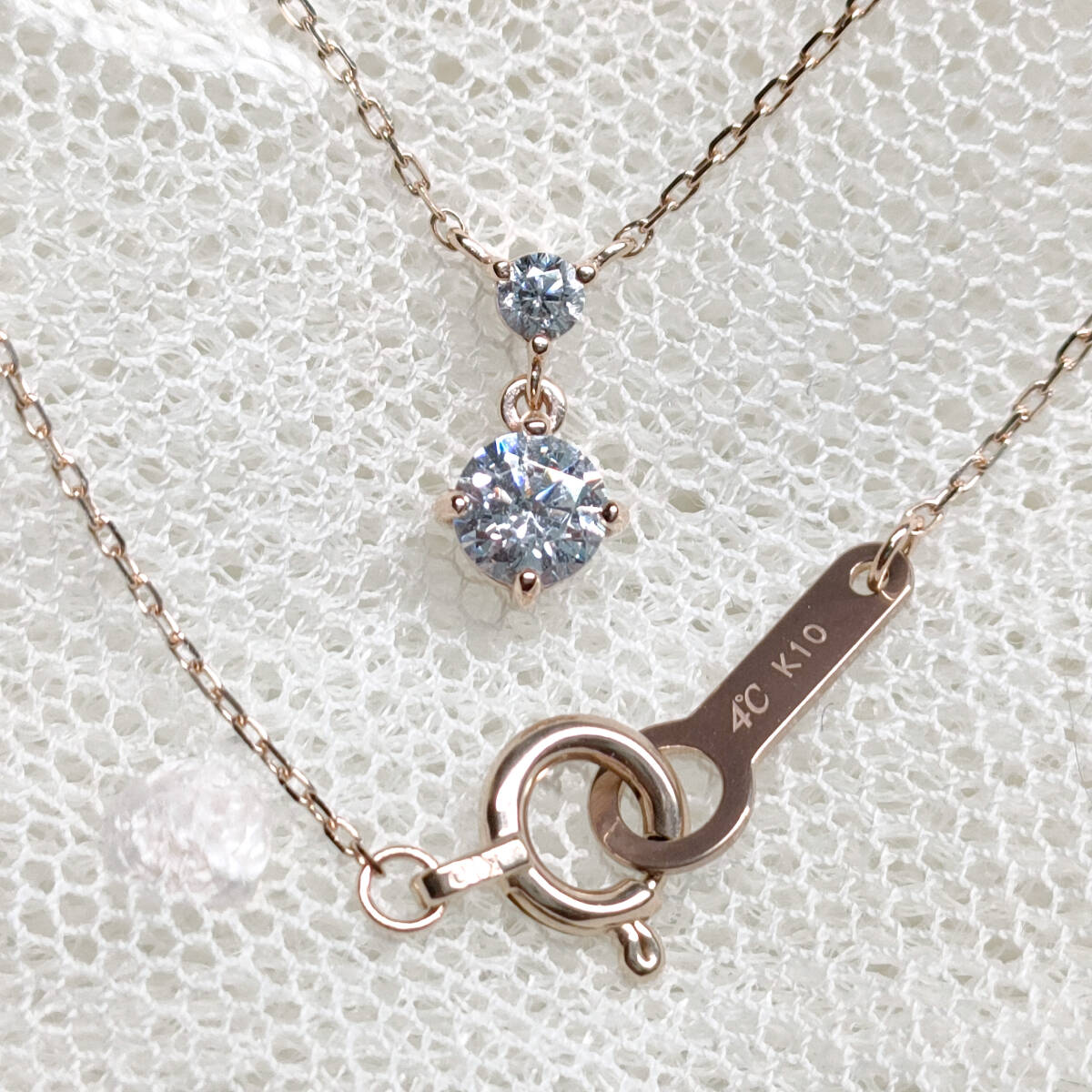 - K10 【4℃】 ネックレス クリアストーン 39.5cm PG ピンクゴールド 4°C ヨンドシー 10金 10K