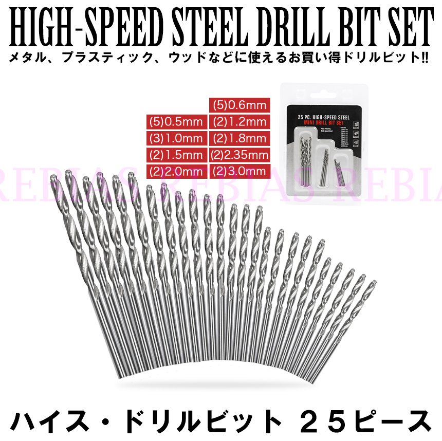 - 送料無料 ハイス ドリルビット 25本セット 高速度鋼 ハイスピードスチール 穴あけ 加工