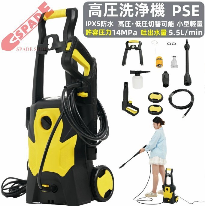 > 【国内発送】高圧洗浄機 圧倒的な洗浄力 許容圧力:14MPa 吐出水量:5.5L/min 東西日本兼用 家庭用 高圧クリーナー 高圧・低圧切替可能