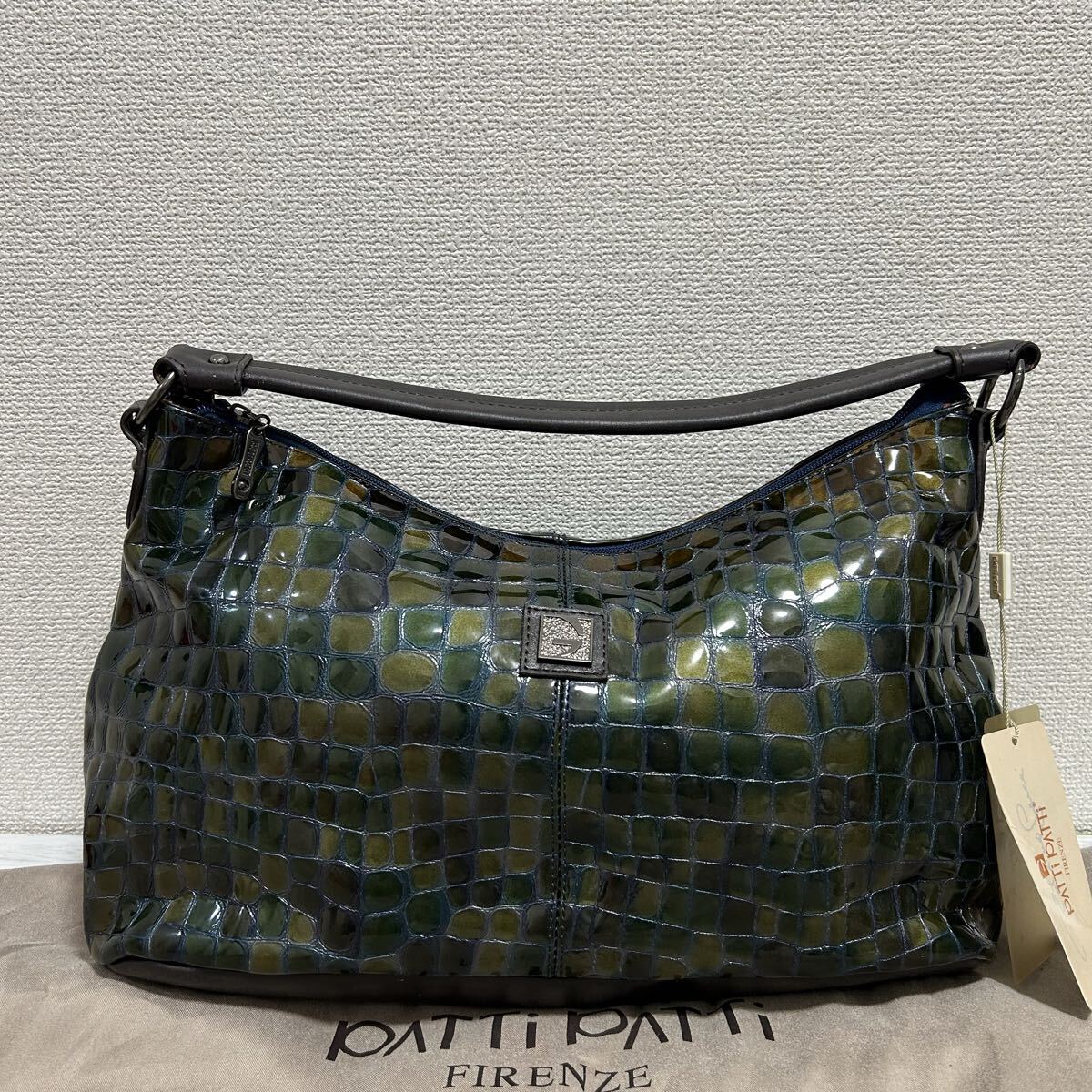 > patti patti レディース トートバッグ ワンショルダーバッグ 本革 牛革 パテントレザー エナメル加工 緑色 グリーン ネイビー クロコ型押し