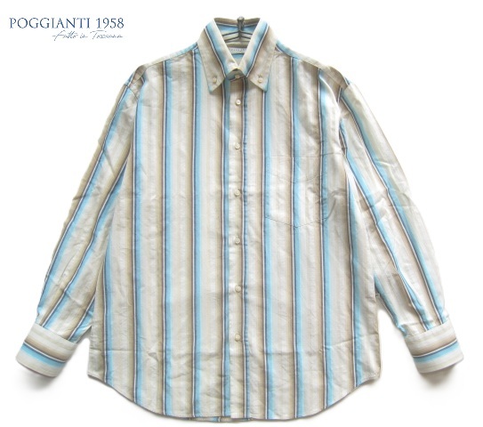 > 美品イタリア製!!ポジャンティ1958 POGGIANTI 1958*胸ポケット付き ストライプ柄 ドゥエボットーニ ボタンダウンシャツ 41 XL 定価3.2万