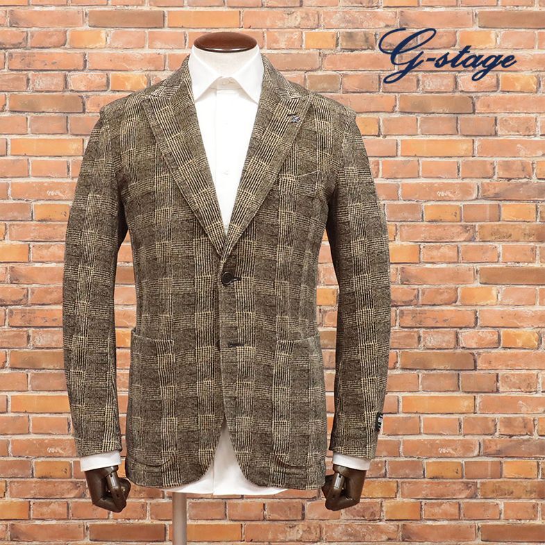 - 1円/秋冬/g-stage/46サイズ/楽ちん ジャケット EUSEBIO社コーデュロイ ジャージー快適 グレンチェック レトロ 新品/ベージュ/je113/