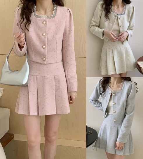 > ブレザー+ミニスカート 2点セット きれいめ かわいい ショート丈コート カジュアル 秋冬 セットアップ M オフホワイト