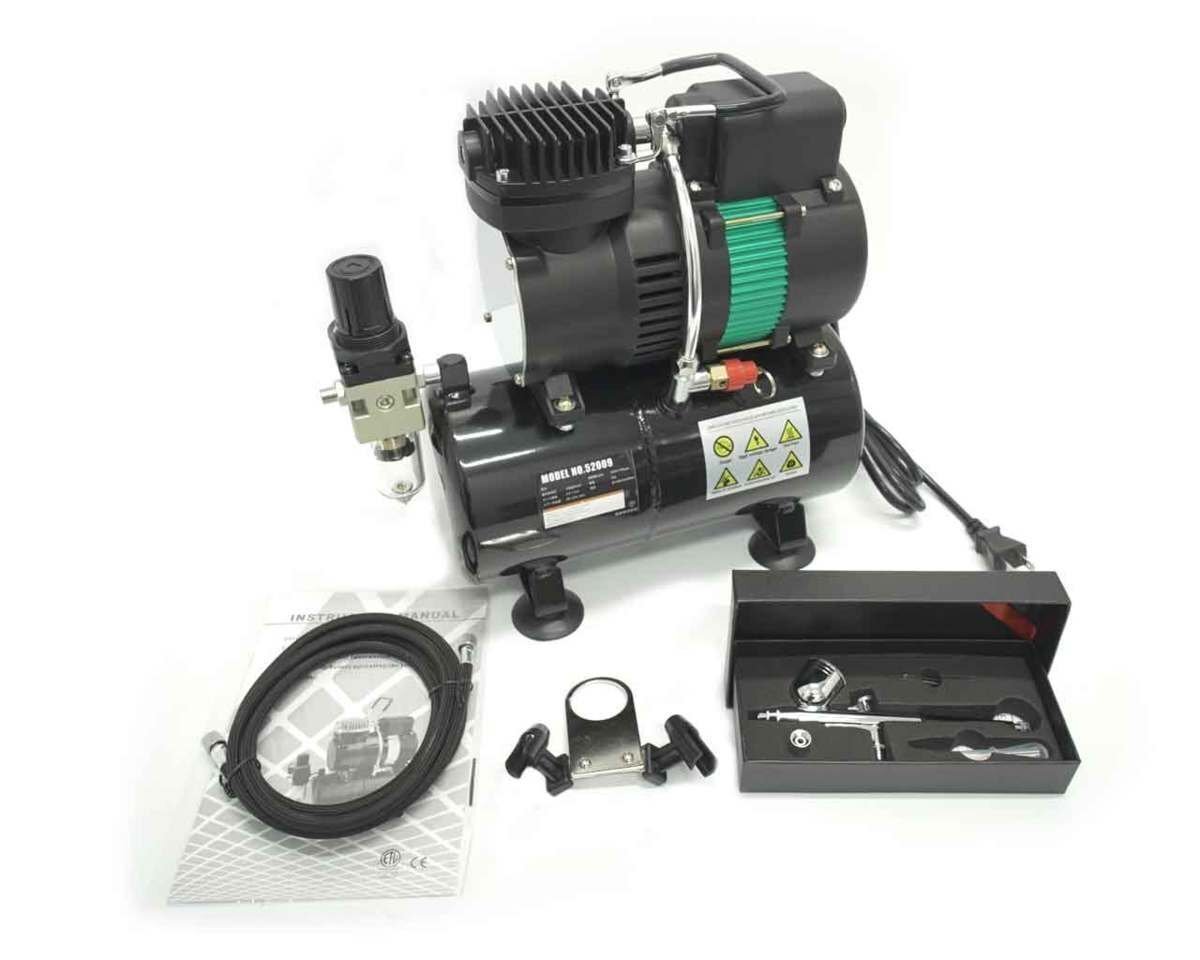 - エアブラシ ミニエアーコンプレッサーセット スターティングキット デュアルファン オイルレス エアコンプレッサー 3L 100V 52009※