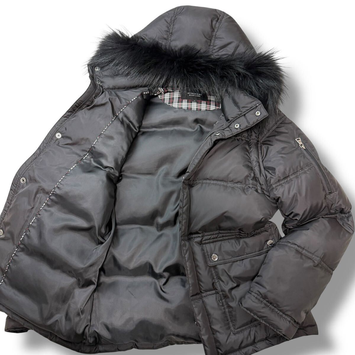 > 1188 極美品/人気L/6way◎バーバリーブラックレーベル ダウンジャケット リアルファー ノバチェック フード着脱 BURBERRY BLACKLABEL 黒