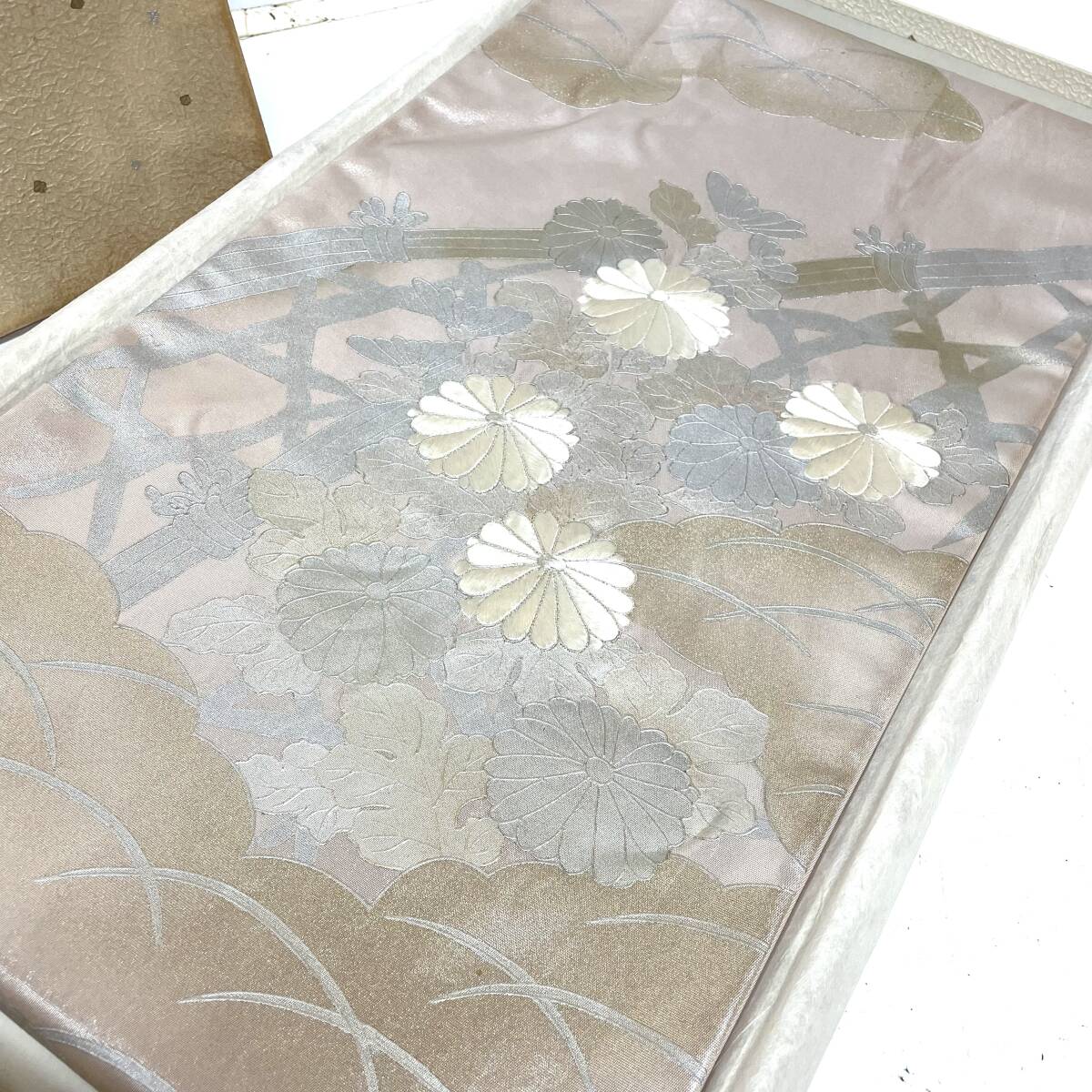 > 【中古】袋帯 リサイクル帯 幅30.5cm 長さ約420cm レディース 花薄ピンク 正絹 リメイク リユース