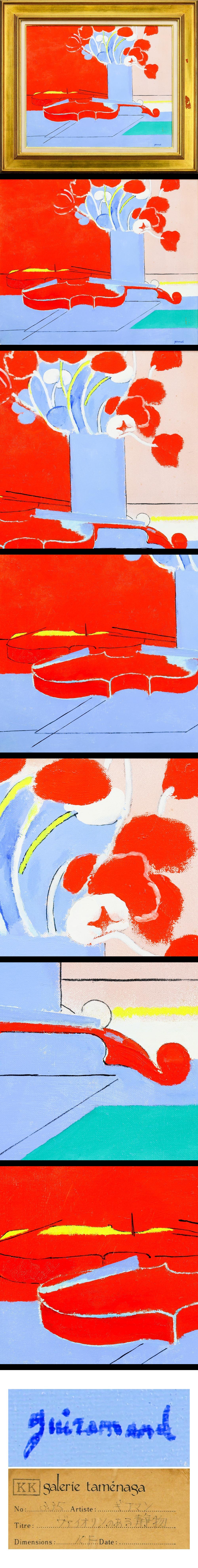 > 【真作】【WISH】ポール・ギヤマン Paul Guiramand「ヴァイオリンのある静物」油彩 10号大 ◆貴重オリジナル作品 赤の美彩名画 #25102788