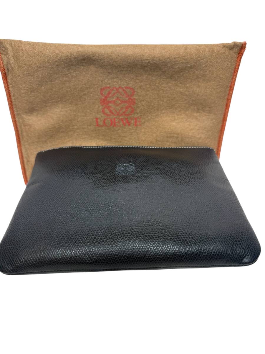 > ●H7-10-87 LOEWE ロエベ レザーポーチ 紺色 保存袋あり ほぼ未使用